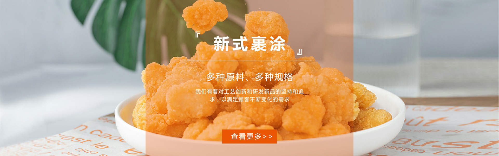 ? ? 公司的主要產品有:新式裹涂系列、復合調味料系列、裹漿粉系列、快餐食品系列等。